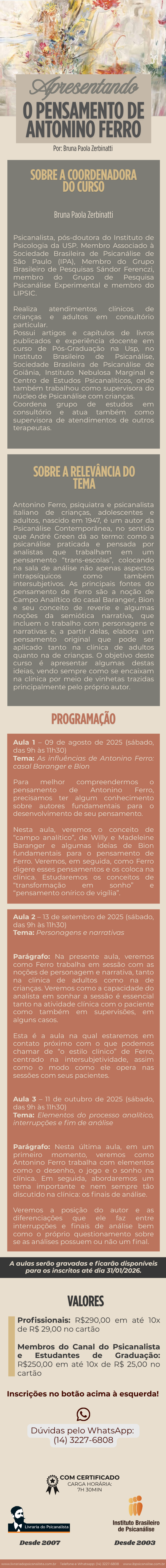 Membros do Canal do Psicanalista e Estudantes de Graduação: R$250,00 em até 10x de R$ 25,00 no cartão.