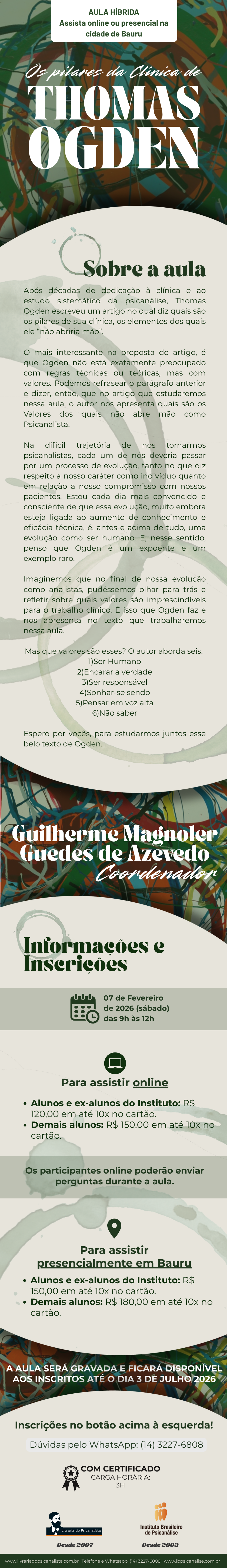 Alunos e ex-alunos do Instituto: R$ 120,00 em até 10x no cartão.